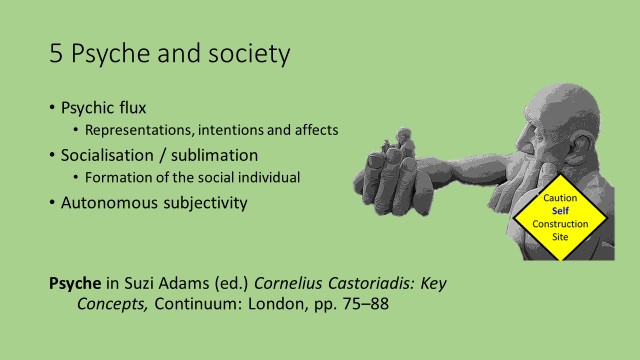 key concepts coverA lot of this week’s blog is extracted from the chapter Psyche in Suzi Adams (ed.) Cornelius Castoriadis: Key Concepts, Continuum: London, pp. 75–88. I will indicate this by beginning the paragraph with the page numbers in brackets, as per the beginning of the next paragraph.